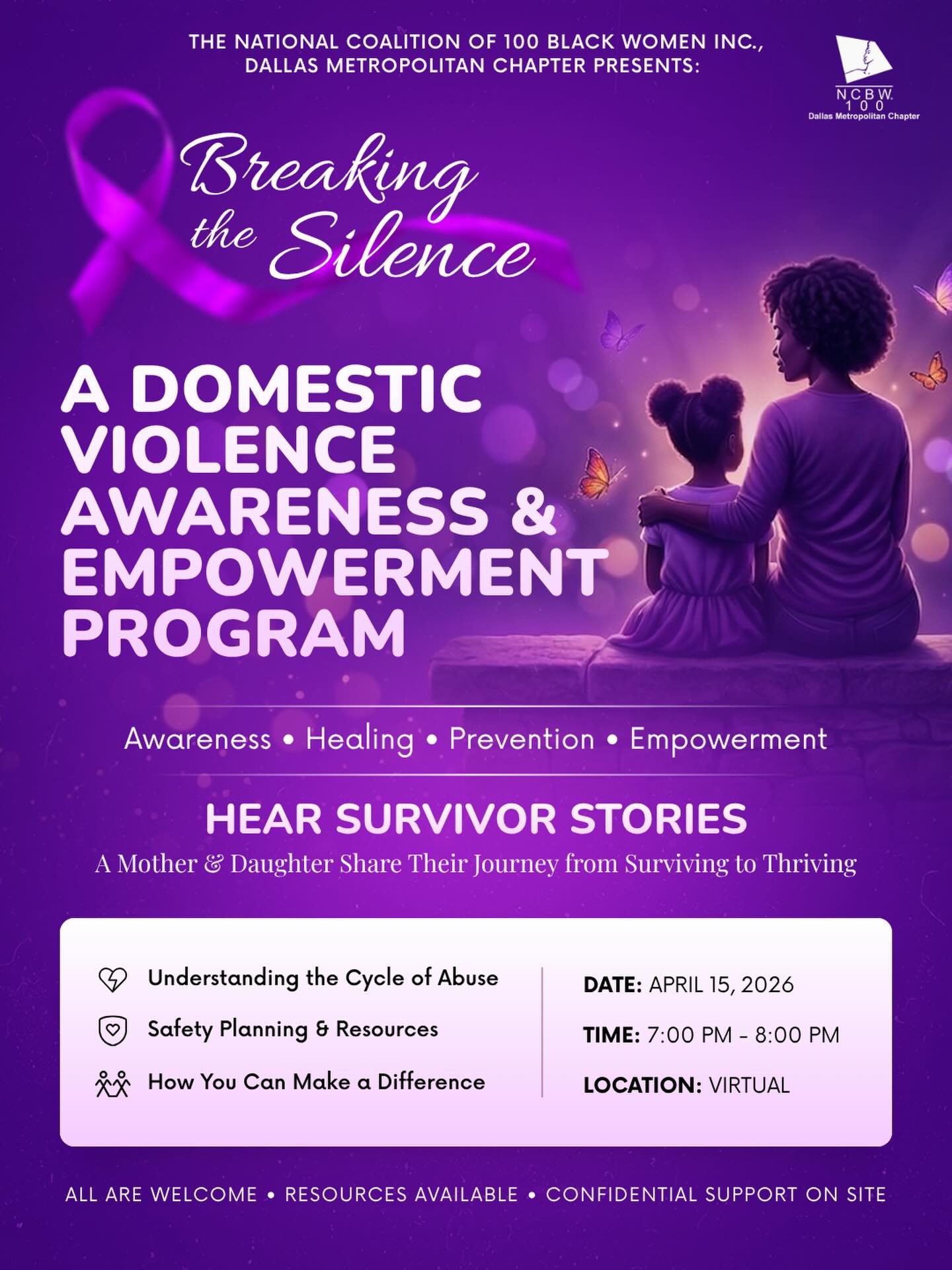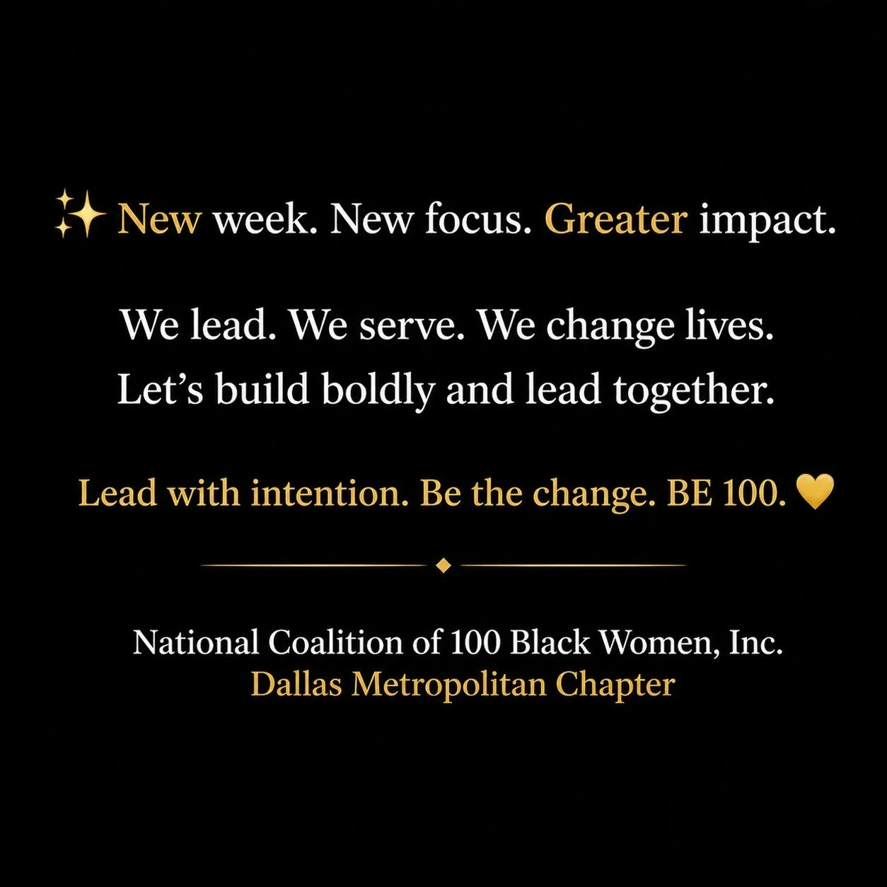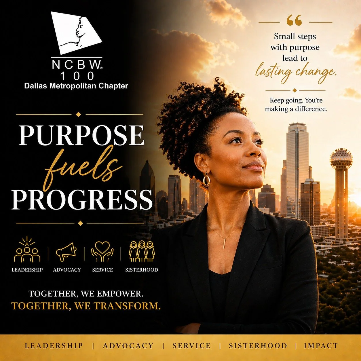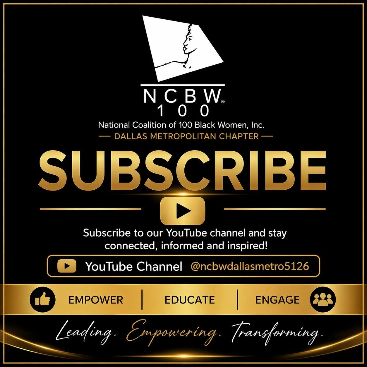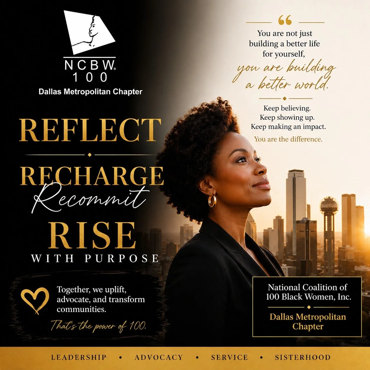 The National Coalition of 100 Black Women, Inc. Dallas Metropolitan Chapter was established in June 2018. We will bring our vision to life by strategically advocating for leadership development and gender equity in the areas of health, education and economic empowerment.